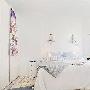真丝丝巾靠垫的圆案与周围家居装饰呼应,亲切温婉的粉红色温暖了色调冷静的空间。 居室以白色为主题色,家具与沙发均为洁白,而墙壁上的丝巾挂画则色彩纷呈。真丝色泽柔和,绚烂不嚣张,与白色搭配完美