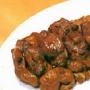 配料: 猪肝400克,熟猪油200克,木耳20克,泡辣椒4只,料酒2茶匙,时菜20克,蒜、葱、姜各适量,生粉少许。 操作: 将猪肝(选用新鲜细沙猪肝)洗净,滤干水分