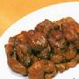 麻婆山药 材料: 山药300克、牛肉馅100克、青蒜苗15克 郫县豆瓣1/2汤匙(7.5ml)、豆豉1/2汤匙(7.5ml)、甜面酱1汤匙(15ml)、姜1