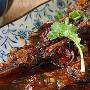 【菜名】 豆瓣卿鱼 【所属菜系】 川菜 【特点】 色泽红亮,咸鲜微辣,略带甜酸;肉质细嫩。 【原料】 鲜活鲫鱼三条(每条约150克)。 郸县豆瓣20克、料酒1