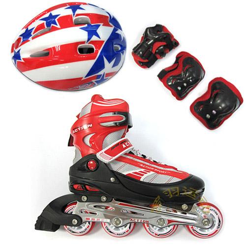 正品包邮 动感/ACTION PW 123A溜冰鞋 轮滑鞋 (黑红 护具+头盔)