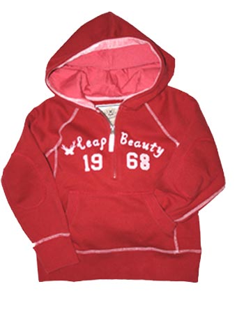 前胸有精美的贴布绣花,下摆与袖口是宽松的罗纹。