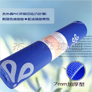 杰朴森PVC7mm环保印花(六叶草)蔚兰色瑜伽垫◆送瑜伽垫背包