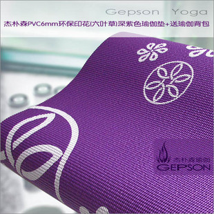 杰朴森瑜珈垫◆PVC6mm环保印花(六叶草)深紫色瑜伽垫(送瑜伽背包)