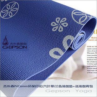杰朴森PVC6mm环保印花(六叶草)蔚蓝色瑜伽垫◆送瑜珈垫背包