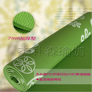 杰朴森瑜珈垫◆PVC7mm环保印花(六叶草)草绿色瑜伽垫(送瑜伽背包)