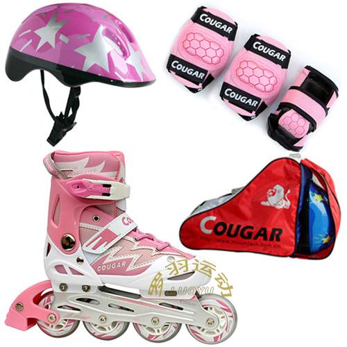 包邮 美洲狮 MS835L可调轮滑鞋/旱冰鞋/滑冰鞋粉白 护具+头盔+包