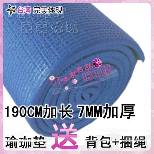 【产 品】:完美体现---出口外贸 PVC发泡 瑜伽垫 (背袋+毛扣)【规 格】:190CM*61CM*7MM (加厚款)【厚 度】:7mm(压有纹理,)【颜 色】:见图片(出货量很大,请买家购买前咨询各颜色存货情况,如有色差,以实物为准)【材 质】:PVC发泡(PVC含量,瑜伽垫重量是1300克左右)【特点】:采用台湾进口材料制作,内有高韧性防拉网,它的支撑力和垫子的反弹性要比国产材料制作的强很多,质地柔软,可减少身体与地面接触的疼痛感;止滑效果强,韧性度极佳;抗脏能力强,能有效的阻隔地面寒气,抓地力强,平铺伏地;质量轻,体积小,便于携带。注意事项:1.产品有质量问题的,小店负责退换来回的运费。2.其他原因由买家自己负责来回邮资洗涤方法:( 1 ) 洗涤时请用清水或者重新洗涤剂清洗 ( 2 ) 洗净后请放置荫凉处晾乾即可..请勿暴晒! ( 3 ) 碱性漂白剂是变色主因..请勿使用... ( 4 ) 平时使用后可用湿抹布擦拭后放置阴凉通风地 自然干。颜色:如图所示。根据显示器效果产生的色差希望理解~
