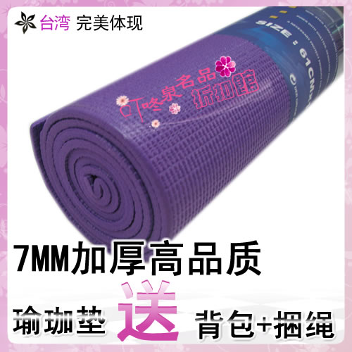 【产 品】:完美体现---出口外贸 PVC发泡 瑜伽垫 (背袋+毛扣)【规 格】:173CM*61CM*7MM (加厚款)【厚 度】:7mm(压有纹理,)【颜 色】:见图片(出货量很大,请买家购买前咨询各颜色存货情况,如有色差,以实物为准)【材 质】:PVC发泡(PVC含量,瑜伽垫重量是1300克左右)【特点】:采用台湾进口材料制作,内有高韧性防拉网,它的支撑力和垫子的反弹性要比国产材料制作的强很多,质地柔软,可减少身体与地面接触的疼痛感;止滑效果强,韧性度极佳;抗脏能力强,能有效的阻隔地面寒气,抓地力强,平铺伏地;质量轻,体积小,便于携带。注意事项:1.产品有质量问题的,小店负责退换来回的运费。2.其他原因由买家自己负责来回邮资洗涤方法:( 1 ) 洗涤时请用清水或者重新洗涤剂清洗 ( 2 ) 洗净后请放置荫凉处晾乾即可..请勿暴晒! ( 3 ) 碱性漂白剂是变色主因..请勿使用... ( 4 ) 平时使用后可用湿抹布擦拭后放置阴凉通风地 自然干。颜色:如图所示。根据显示器效果产生的色差希望理解~绿色深紫色