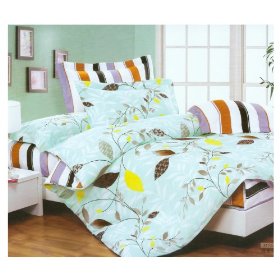 乔安全棉斜纹印花双人被套-叶伴舞-1506-3-蓝