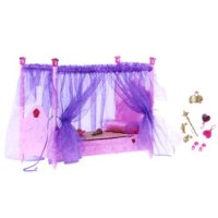 详细描述: 睡公主芭比睡床拥有女孩们喜欢的声光功能。漂亮的蓝色纱帐可随意放下或揭起,适合任何公主的使用。当你女孩启动床时,床柱会亮灯并发出美妙睡美人芭蕾乐曲。另配有玫瑰花、梳子、发夹等效配件。内不含娃娃。